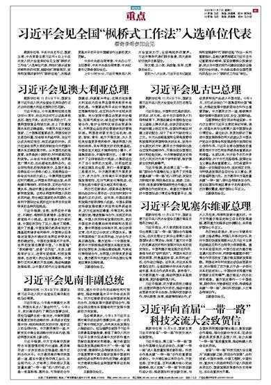 习近平指出,第三届“一带一路”国际合作高峰论坛成功举办,共建“一带一路”进入高质量发展的新阶段。科技合作是共建“一带一路”合作的重要组成部分。中方将弘扬以和平合作、开放包容、互学互鉴、互利共赢为核心的丝路精神,深入实施“一带一路”科技创新行动计划,推进国际科技创新交流,与各国共同挖掘创新增长潜力,激发创新合作潜能,强化创新伙伴关系,促进创新成果更多惠及各国人民,助力共建“一带一路”高质量发展,推动构建人类命运共同体。