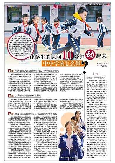 课间10分钟俗称小课间,是中小学生调节学习状态、缓解疲劳和相互交流的重要时段。