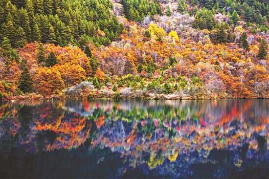 但不得不承认,秋季的九寨,直如五彩斑斓的调色盘,承担了一半以上的心神往之——没办法,超过2000种植物的渐变色以及喀斯特地貌的钙化作用所形成的天然色泽的大小湖泊,注定了这必须是一处难以取舍的目的地。