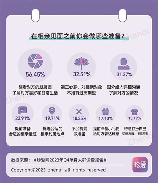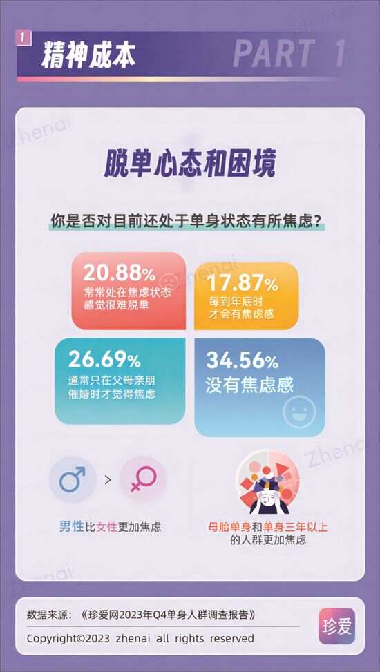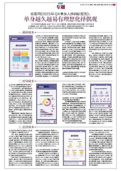 作为互联网婚恋服务头部企业,珍爱网深刻洞察当代青年婚恋观念的变革趋势,此次《2023年Q4单身人群调研报告》更为婚恋交友行业提供了有力的数据参考。未来,珍爱网将持续完善便捷、高效、可靠的婚恋服务,坚持引导正向婚恋价值观,助力亿万用户幸福脱单。