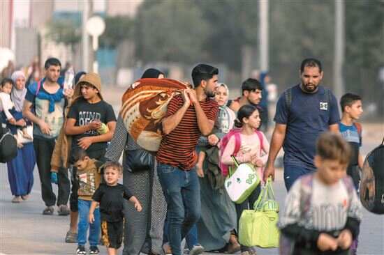■11月8日,在加沙地带中部地区,巴勒斯坦人向南部迁移。新华社发