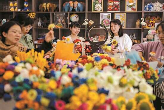 ■“双11”走到第15个年头,注重性价比、更能满足情绪价值的理性消费方式成为更多年轻人的追求。11月9日,山东省荣成市巾帼创业孵化基地,妇女创客在直播推介毛线编织手办、花束等。新华社发