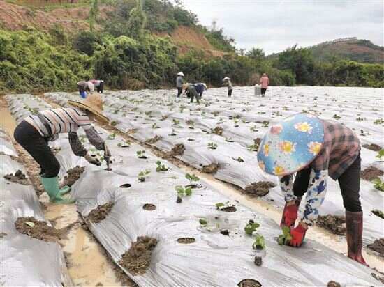 新快报讯 记者方轶报道 立冬之日,正是茂名市电白区观珠镇合利村农忙之时,田间地头人头攒动、机声隆隆,一派忙碌的景象。村民们正趁着风调雨顺、气候温暖的好时节抢种冬季蔬菜,除草覆膜,安装滴灌管线,栽种茄子苗。