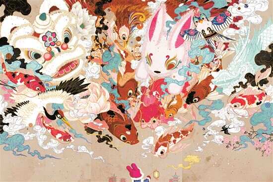 本次展览另一个亮点是多元,除了上述神话和岭南元素题材,还有众多跟传统建筑、民俗文化以及地区生活气息相关题材的作品,而且表达手段丰富多样,插画师们可谓各出奇招,招招制胜。