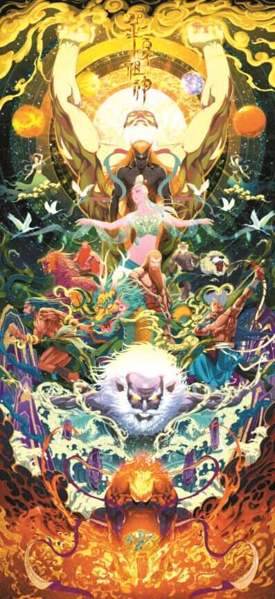 在现场,让新快报收藏周刊记者尤为注意的是,约莫五米高,六七米宽的以醒狮为主题的作品《醒狮》,强大的视觉处理强化了传统文化的传播,对此,本次展览的策展人、佛山市艺术设计协会会长李国政告诉记者,“这次展览,我们更突出插画文化属性的表达,助力中国传统文化,尤其岭南本土文化在绘本插画中的传播。”
