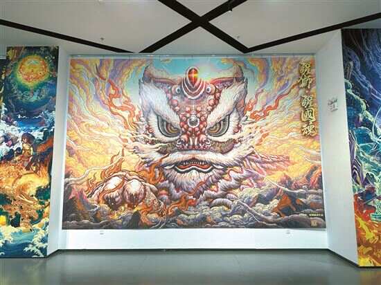 本次展览最大的亮点是中国神话和岭南元素的表达,一楼展出巨大尺幅的《荡磨图》《定海神针》《醒狮》《独占鳌头》等作品成为了让不少观众注意的焦点。