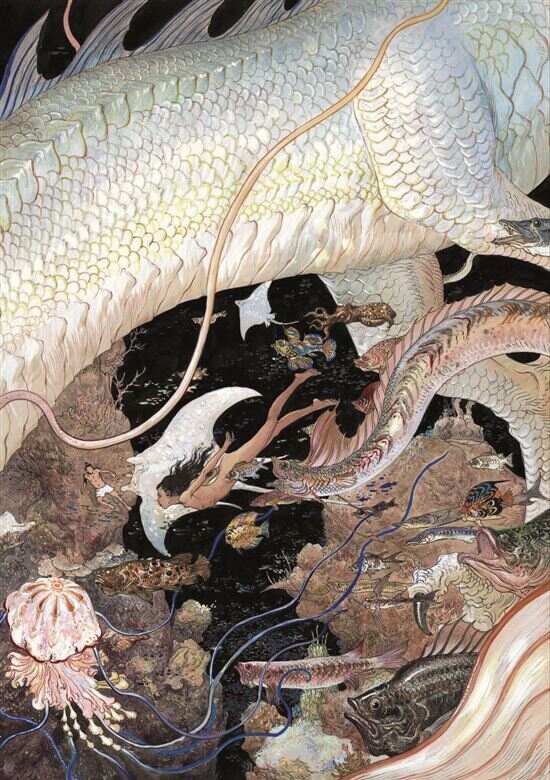但现在的数媒时代,给画家们提供了足够的展示空间,有一些插画,甚至不亚于一张高水平的工笔画,有些也不亚于一张优秀的油画。媒介可以充分展示它们的细节。这一代插画有个明显的特点,氛围感很强,像极了大电影般的大场景。另外,现代国风的盛行,追求繁复的造型、层层叠加的丰富层次,也有一系列的优秀插画。