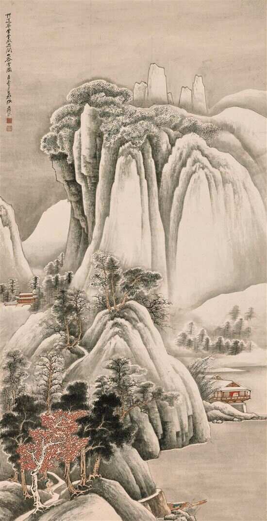 ■张大千《关山密雪图》,137.2×70.5厘米,1947年作