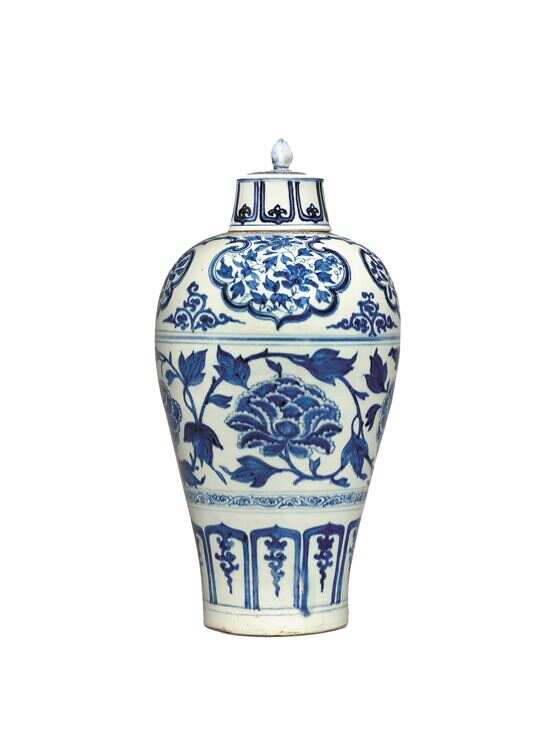 中国瓷器及艺术品部门则以本季备受瞩目的天民楼珍藏领衔。天民楼珍藏乃藏家自1970年代起历经数十年的心血搜集而成,其收藏尤以元青花瓷及明清御制瓷最为闻名。今次预展带来元青花缠枝牡丹云肩纹带盖梅瓶等多件天民楼珍藏瓷器,除此之外还展出一批重要清代御制瓷器、明代瓷器及亚洲私人珍藏宋瓷,瞩目逸品包括一尊清雍正青花釉里红云海腾龙纹天球瓶、明永乐青花缠枝四季花卉纹折沿洗,以及一件珍稀的北宋定窑白釉净瓶。