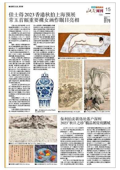 记者从佳士得方面获悉,2023年香港秋季拍卖将于11月24日至12月2日举行,拍卖前夕,佳士得先后于京沪两地举办预展活动。11月9日-11日,上海预展于佳士得上海艺术空间亮相,展出本季秋拍两百余件精选拍品,分别来自二十及二十一世纪艺术、中国瓷器及艺术品、中国书画等部门的名家杰作,以及瑰丽珠宝、名表等。