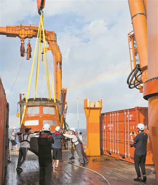 ■11月11日,考察队将求救船只转移至“雪龙2”号。新华社发