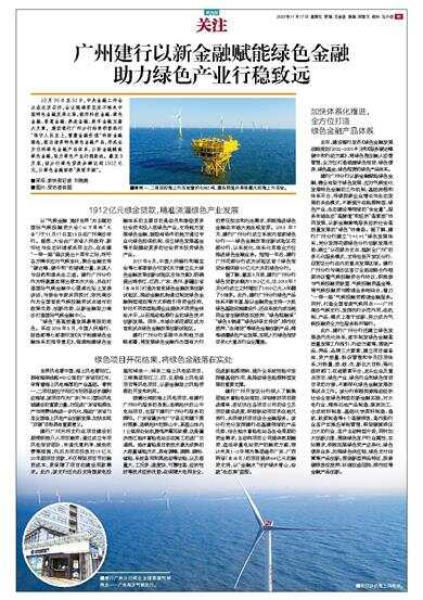 建行广州分行以新金融赋能绿色金融,健全有助于绿色发展、应对气候变化发展特色金融的工作机制、基础流程和体系平台,持续探索企业增长与生态发展的共生模式,不断提升在能源转型、绿色产业、生态建设等领域的“含金量”,服务羊城生态“高颜值”和经济“高素质”协同发展,以新金融奏响服务经济社会高质量发展的“绿色”协奏曲。据了解,建行广州分行建立“1+1+1”绿色发展体系,充分发挥花都绿色分行创新发展优势,确立“以花都为支点、辐射全广州”的多元化服务模式,支持包括开发区分行、自贸区分行在内的重点发展区域。建行广州分行与南沙区签订全面战略合作框架协议暨气候投融资合作协议,积极参与气候投融资联盟、气候投融资基金等,将气候投融资与跨境业务相结合,着力“一带一路”气候投融资跨境金融服务。同时,打造全国首家气候网点——广州南沙气候支行,发挥先行示范作用,在机制、产品、模式上敢于创新,努力成为气候投融资全方位服务标杆银行。