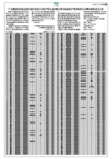 现顺德农村商业银行公告通知各持卡人及担保人:华润渝康 作为下列债权的受让方,请公告清单所列持卡人及其担保人,从公告之日起立即直接向华润渝康履行还本付息义务及承担相应的担保责任。华润渝康接收还款的银行账户户名:华润渝康资产管理有限公司,账号: 500111064018000006194,开户行:交通银行重庆两江新区分行。