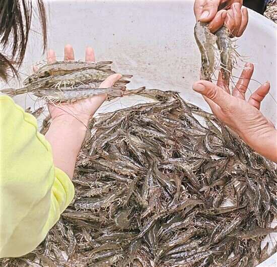 11月15日午后,北风清劲,在广东省湛江市徐闻县和安镇的一块块现代化鱼塘边上,人们在围观刚刚捞上来的鱼虾。只见一只只的白虾活蹦乱跳,珍珠斑肥美壮实,每次弹动把胶盆打得啪啪响。