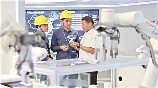 ■南方电网广东东莞供电局工作人员走访智能制造企业,深入了解企业生产情况和用电需求。(顾萱/摄)