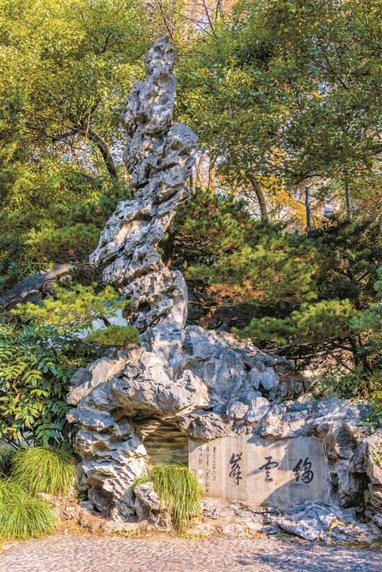 中国浙江杭州竹素园江南名石苑绉云峰。VCG供图