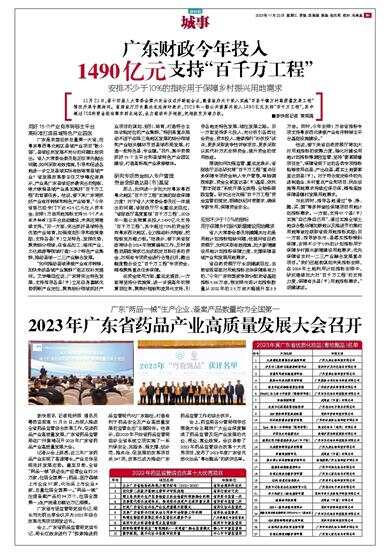新快报讯 记者陆妍思 通讯员粤药监报道 11月21日,为深入推进全省药品监管综合改革工作,促进药品产业高质量发展,广东省药品监管局在广州黄埔召开2023年广东省药品产业高质量发展大会。