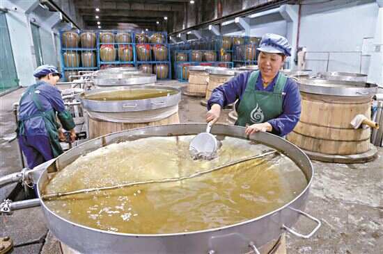 ■贵州岩博酒业有限公司生产车间内,家门口就业的妇女正专心酿酒。