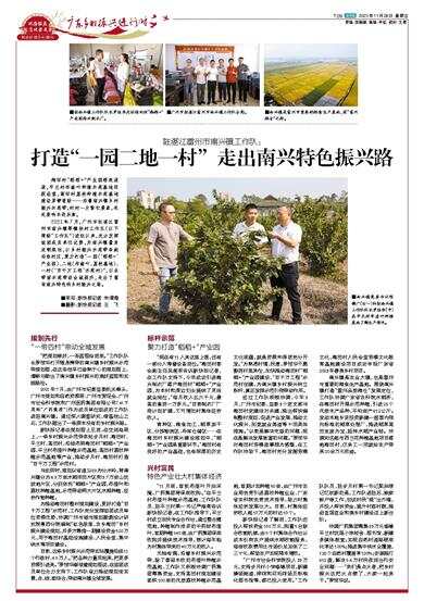 2021年7月,广州市驻湛江雷州市南兴镇帮镇扶村工作队(以下简称“工作队”)进驻以来,充分发挥组团成员单位优势,为南兴镇量身定制规划,以乡村振兴示范带串起沿线村庄,聚力打造“一园(‘稻稻+’产业园)、二地(布渣叶、荔枝基地)、一村(‘百千万工程’示范村)”,以点带面示范带动全域提升,走出了富有南兴特色的乡村振兴之路。