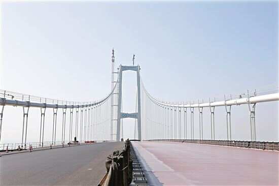 跨径全离岸海中钢箱梁悬索桥