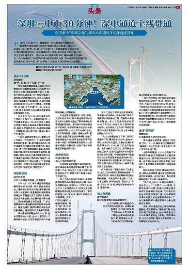 广东交通集团党委书记、董事长邓小华表示,“作为珠江口‘A’字形交通网络骨架的重要一横,明年建成通车后,深中通道将与已建成的港珠澳大桥、南沙大桥、虎门大桥等跨海跨江通道,构筑起均衡协调、面向未来的高速交通网络,粤港澳大湾区的综合交通运输便利度及过江通道的通行能力将得到大幅提升,在为打造环珠江口‘黄金内湾’打下坚实基础的同时,也将为沿线城市提供更多的合作空间、发展空间、想象空间。”
