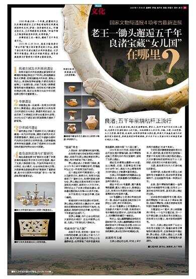 2023年11月29日,国家文物局举行“考古中国”重大项目重要进展工作会,通报了浙江杭州良渚古城及水利系统遗址、江苏常州寺墩遗址、湖北沙洋城河遗址、南岛语族起源与扩散研究4项考古最新进展。
