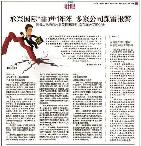 2015年2月至2019年6月期间,承兴控股及相关公司通过虚构与苏宁、京东的供应链贸易,并以此为底层资产进行融资,骗取湘财证券、摩山保理、上海歌斐、云南信托、安徽众信等机构300余亿元资金。