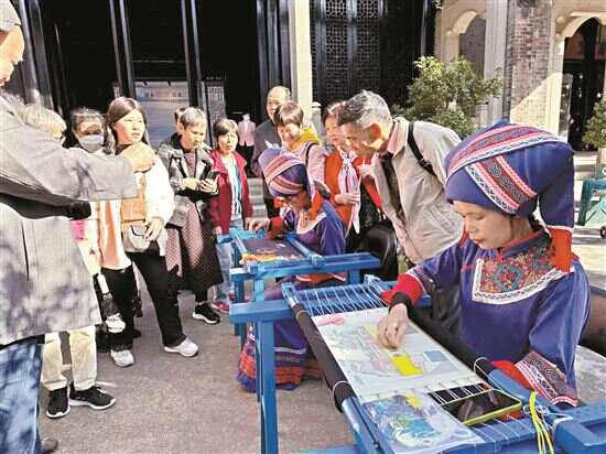 今年11月17日,《嘉乡锦绣,壮美田园:连山壮族瑶族自治县嘉田锦绣专业合作社刺绣作品展》展览开幕暨作品捐赠仪式在广东民间工艺博物馆(陈家祠)聚贤堂圆满举行。绣娘们在陈家祠架起绣桌现场“秀绝活”,引来游客驻足观赏,直观感受绣娘指尖下的壮美田园,乡村振兴的丰硕成果。