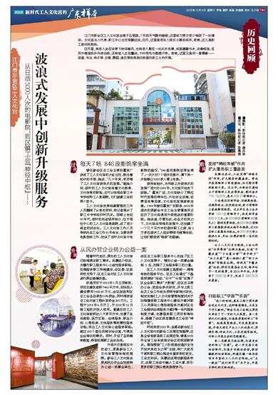 时间来到2021年,坐落在新会区工人文化宫内的新会工运展览馆揭牌,这是全省首家县级工运展览馆,曾是2021年全省工会系统培训会议的现场教学点。展馆围绕“工人阶级是创造历史与开创未来的主力军”主线,向广大党员干部和职工群众推送丰富多彩的党史、工运史知识。吴灏远说将创新服务形式,在职工活动中融入工运元素,吸引更多的职工群众前来参观学习。