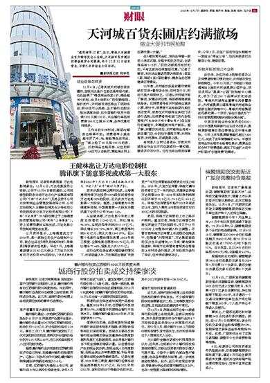 “感恩相伴12载”,近日,粤海天河城商业官方微信发出公告称,天河城百货东圃店因商场租赁合同期满,将于12月31日结束营业,目前已启动结业大促活动。