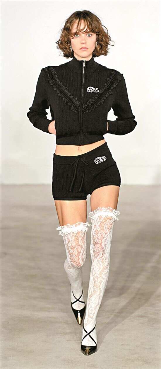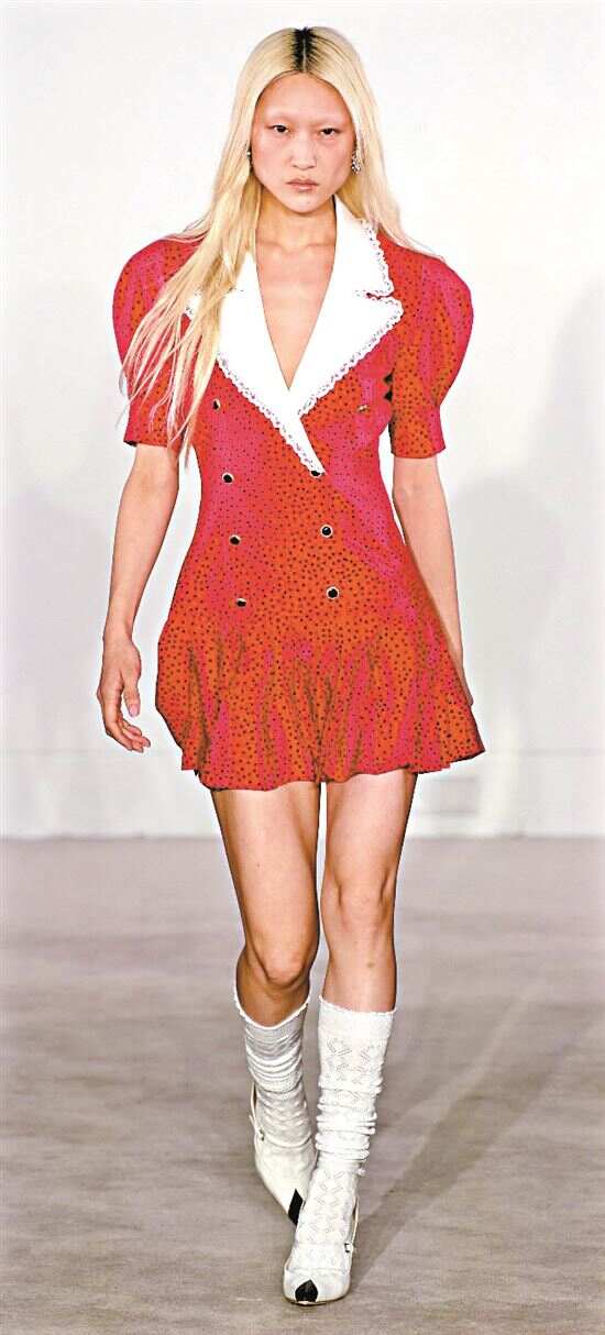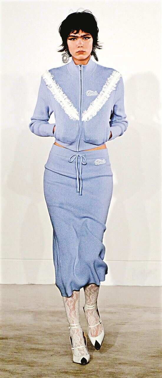 ■Alessandra Rich将代表浪漫的褶皱花边元素融入制服裙、运动服、针织衫、衬衫等单品中,打破传统“好学生”形象,看起来更有活力和个性。(Alessandra Rich 2023秋冬成衣系列)