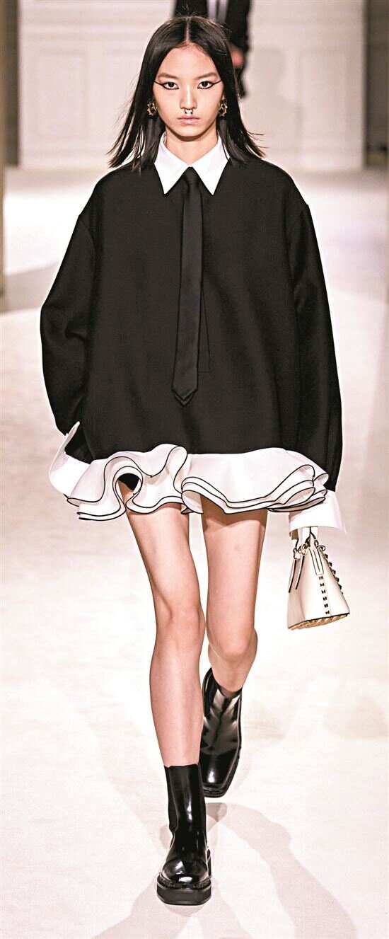 ■Valentino黑领带系列,标志性学院风单品在不同搭配中都有“画龙点睛”的作用。(Valentino 2023秋冬成衣系列)