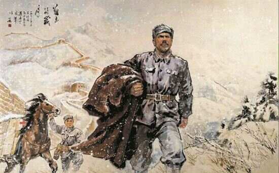 在杨之光《难忘的岁月》作品中,主人公白求恩身材高大,神情坚毅,目光注视着远方。呼啸的狂风、没膝的枯草、恶劣的天气和环境并不能阻止他前行的决心和脚步。一棵挺拔的松树傲立在风雪中,蜿蜒的长城像一条矫健的巨龙,越群山,经绝壁,起伏在崇山峻岭之巅。整个画面使人想起唐代诗人杜甫的诗句:“乱云低薄暮,急雪舞回风。”由于从题材、内容、心理情怀到语言形式均紧扣中国社会发展前行的现实走向,杨之光的这幅创作具有鲜明的时代气息,也因而使其能在变革与创新中展现出个性风貌。