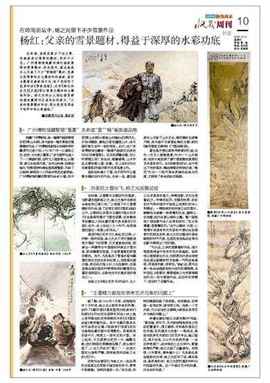 在岭南,虽然没真正下过大雪,但画家表达雪景的题材,却并不少见。广州博物馆就藏有清代画家黎简的雪景题材,而近现代,著名画家关山月画了不少“雪梅图”题材,但真正把雪景作为主题创作的画家,或许当数著名画家杨之光,他不但创作了经典作品《雪夜送饭》,还有《难忘的岁月》《天涯》等以雪景为题材的主题性作品。杨之光的女儿杨红接受新快报收藏周刊记者采访时表示:“父亲的雪景题材作品,很大程度是得益于他早年的水彩基础。”