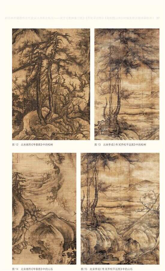 傅申在这些鉴定案例中展现了对现代鉴定方法极为熟练的掌握与运用。其中,最重要者当属通过作品风格的比较进行鉴别,即依靠作品风格、技法、构图、画家习惯手法等与标准器对比勘验,从而鉴别真伪。如傅申将日本所藏传为李成《乔松平远图》改定为郭熙真迹。此图原有李成名款,故以往一直传为李成所作。傅申则利用画家的构图习惯,仔细对比《乔松平远图》与郭熙真迹《早春图》中松树、枯木的造型、组合习惯、笔墨细节,以及山石、水口的画法,辨认出此图实出于郭熙之手的结论。