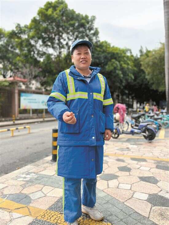 “我每天的工作就是在桃园西路清扫路面,辛苦是辛苦,但是有奔头。”陈桂芳说,她对生活的要求不高,只要有钱维持一家人的生活就好,现在比起在老家生活好了许多。如今,陈桂芳的丈夫也在广州工作,夫妻合力拧成一股绳,努力为一家人创造更好的生活。