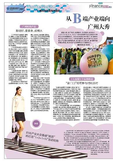 “广州时尚产业基础好、要素全、规模大,产业链、供应链完整。”广州市商务局副局长陈彦川说,在流通端,广州现有的专业市场不少都是细分领域的全国领军市场。在生产端,广州时尚产业集聚度高,特色鲜明。