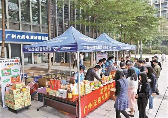 “这个花生好吃,来两包。”“我要一箱脐橙。”“红薯干好甜,拿一包。”近日,在广州无线电集团总部的院子里,刚下班的员工纷纷聚在消费帮扶展台前试吃和购买帮扶产品,场面火爆。