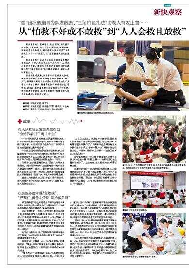 在最近举行的一次全国性的急救比赛上,马俊峰向新快报记者分享了这段故事:“救人于水火虽然是消防员专长,但急救包扎技巧却是全赖红十字急救培训课程。而正好,在现场的我懂得‘三角巾急救包扎止血法’,才有机会避免刚救出的群众陷入下一场险境。”