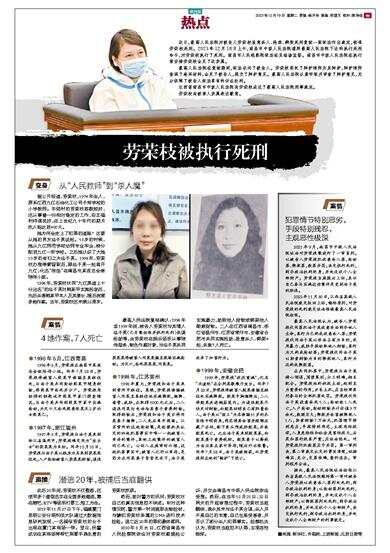 2022年11月30日,江西省高级人民法院裁定驳回上诉,维持原判,对劳荣枝的死刑裁定依法报请最高人民法院核准。