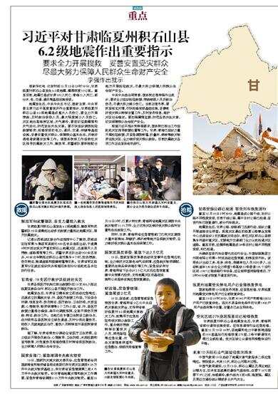 地震发生后,中共中央总书记、国家主席、中央军委主席习近平高度重视并作出重要指示,甘肃临夏州积石山县6.2级地震造成重大人员伤亡,要全力开展搜救,及时救治受伤人员,最大限度减少人员伤亡。灾区地处高海拔区域,天气寒冷,要密切监测震情和天气变化,防范发生次生灾害。要尽快组织调拨抢险救援物资,抢修受损的电力、通讯、交通、供暖等基础设施,妥善安置受灾群众,保障群众基本生活,并做好遇难者家属安抚等工作。请国务院派工作组前往灾区指导抗震救灾工作,解放军、武警部队要积极配合地方开展抢险救灾,尽最大努力保障人民群众生命财产安全。