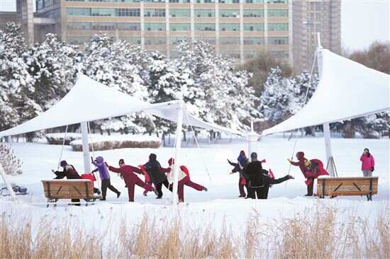 ■市民在哈尔滨湘江公园健身。(资料图)