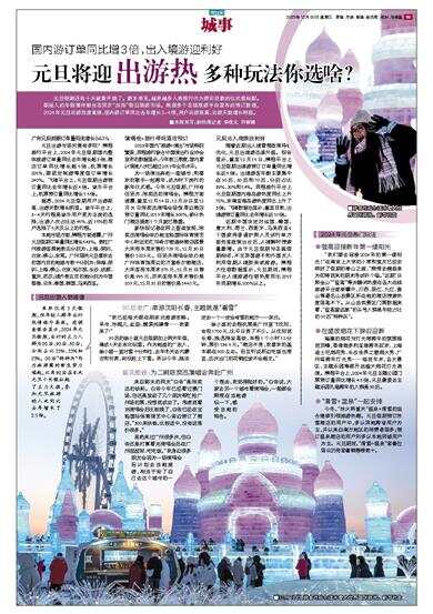 元旦出游市场究竟有多旺?携程旅行平台上,2024年元旦假期国内整体旅游订单量同比去年增长超3倍,酒店订单同比增长超5倍,机票增长205%,跟团定制游等度假订单增长240%。飞猪平台上,元旦假期出游预订量同比去年增长近4倍。途牛平台上,机票预订量同比增长1.5倍。