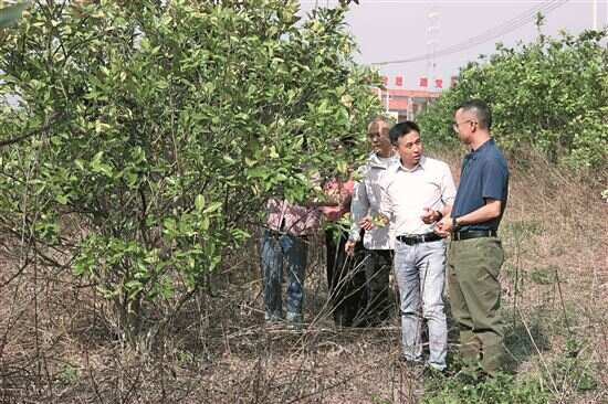 ■驻新安镇工作队大力推动“退桉种果”,新塘村的红宝石青柚种植基地明年将迎来挂果期。