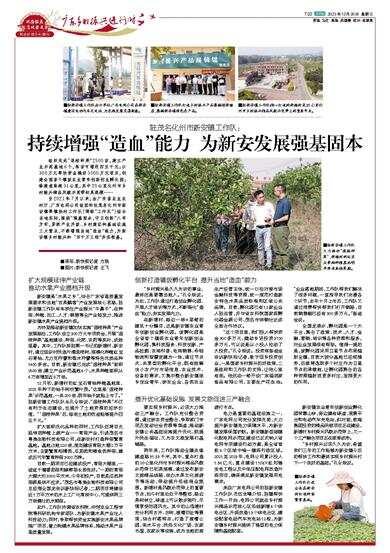 此外,工作队协调省农科院、仲恺农业工程学院等科研机构专家团队,为新安镇水果产业注入科技动力;同时,争取帮扶资金实施新安水果品牌推广项目,着力构建水果品牌体系,推动水果产业高质量发展。