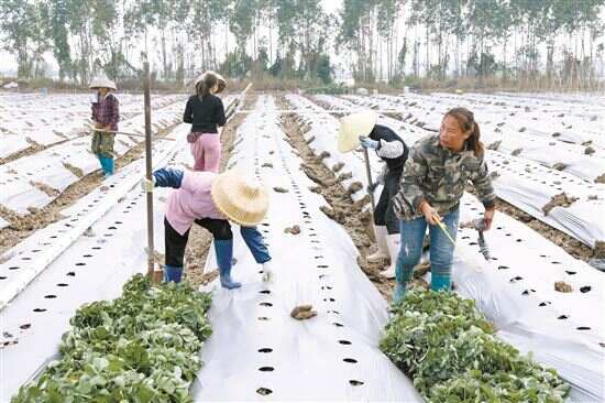 ■牛奶鲜食玉米示范种植基地里,农户正在种植牛奶草莓。