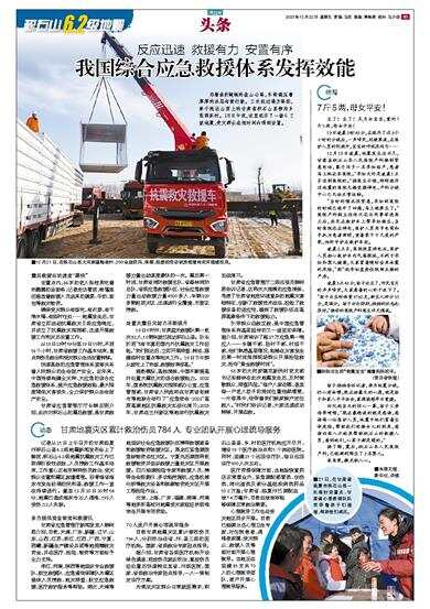 提前模拟,高效演练,中国不断提高对处置大震巨灾的综合救援能力。2022年,国务院抗震救灾指挥部办公室、应急管理部、甘肃省人民政府在甘肃省张掖市等地联合举行了“应急使命·2022”高原高寒地区抗震救灾实战化演习;2023年,甘肃在兰州新区等地举行抗震救灾实战演习。