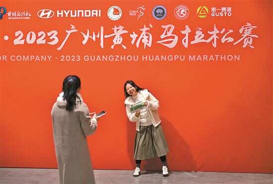 在活动现场,一面密密麻麻的姓名墙展示了全部参赛者的姓名,大家纷纷找到自己的名字合影留念,而在现场另外一个热门拍照打卡点则是一面印满绘画的展示墙,本届赛事面向黄埔中小学生推出“童画黄马”活动,以期扩大马拉松文化的影响力,倡导青少年儿童强健体魄。赛事组委会挑选出60幅充分展现“黄马”魅力的画作发布在赛事官方公众号上,入选的画作还在博览会上统一展示,这一布置也吸引了不少参赛者的眼球。