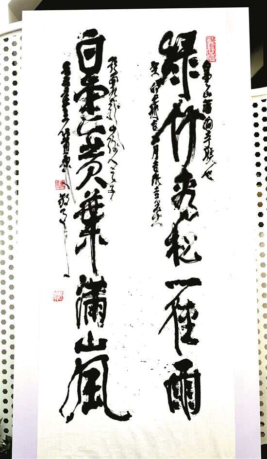12月16日、17日、18日三天现场创作,共创作了45幅八尺书画作品,书画“铁粉们”除了广州的爱好者外,还有来自湛江、佛山、东莞、清远、深圳等地的观众300多人。