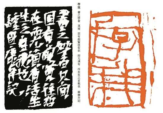 他从来都是自负的,眼里无一人无一物能碍,却同时又都以他括囊。仰观象于玄表,俯察式于群形,他正经地告诉我,他要活到九十以上,他要年年把一些东西加进他的艺术里。我不能准确地读出他有哪些突破有哪些局限,但我在他的书法里读出了金石味,在他的印刻里又读出了毛毫、水墨甚至宣纸的感觉,其宣纸上印石的作品雄沉豪放,感情充沛,生命蓬勃。